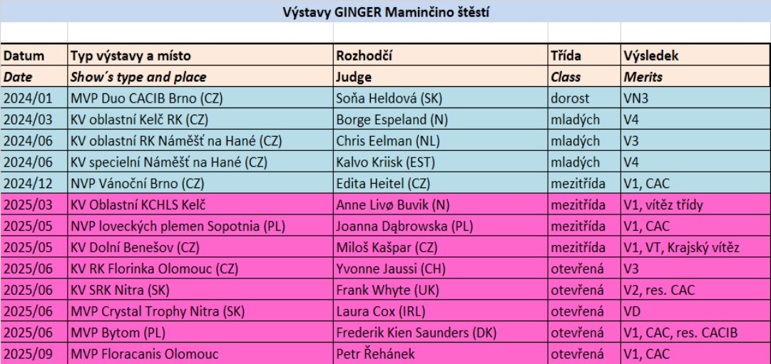 kompletní výsledky výstav (show results)