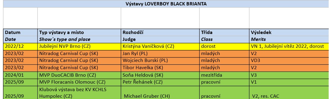 Výstavní úspěchy (Shows): kompletní výsledky výstav (show results)